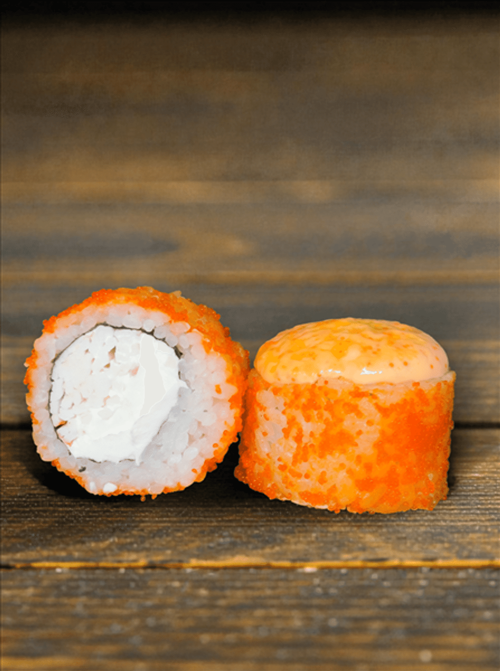 Рис, нори, сливочный сыр, снежный краб, икра масаго, соус с масляной рыбой
