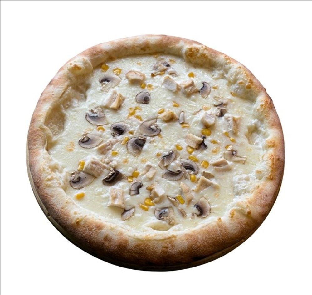 Белый соус, моцарелла, курица, грибы, кукуруза