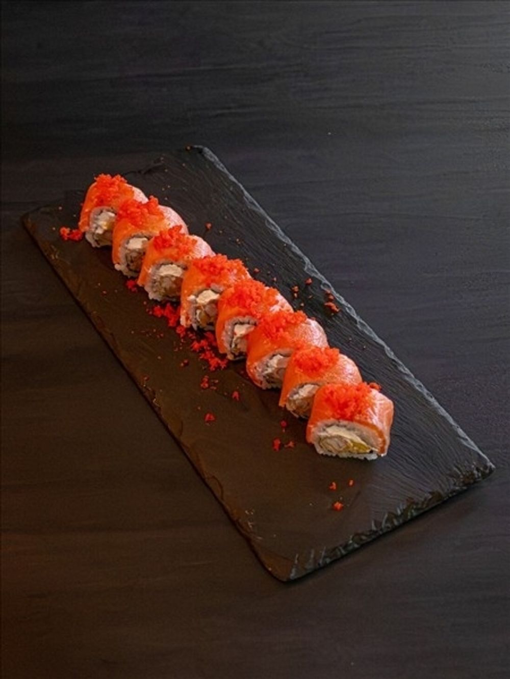 Рис, нори, креветка, манго, сливочный сыр, лосось, икра масаго
